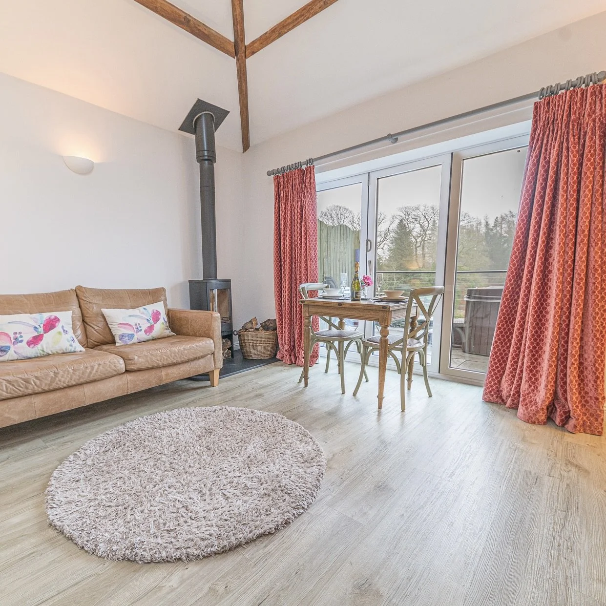 The cottage has a distinctive feel, with high ceilings, original beams and an open-plan layout. Full-height bi-folding doors open onto the outdoor space, creating a seamless connection with the surrounding landscape.