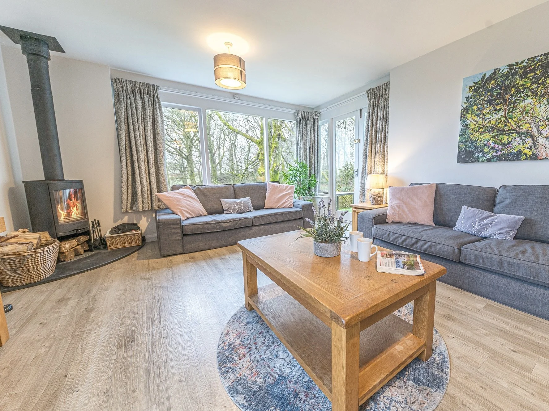 This modern and thoughtfully designed cottage has been furnished to a high standard, combining style with practicality. The spacious living area features a welcoming wood-burning stove and all the comforts of home.