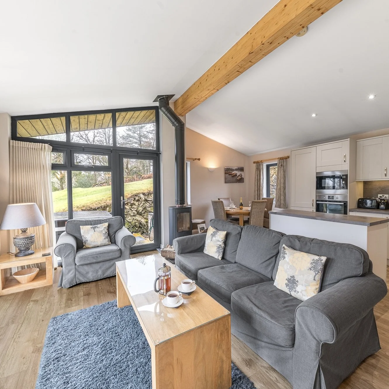 Light-filled and arranged across a single level, the lodge features a generous open-plan living space with a relaxed, welcoming feel. Thoughtfully equipped for a comfortable family stay, it is equally well suited to gatherings with friends.