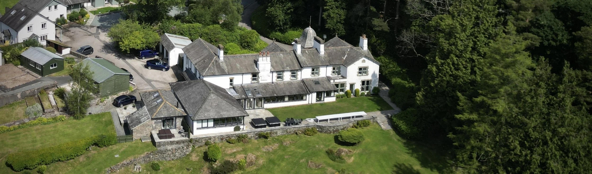 The main entrance leads into a hallway lined with decorative oak panelling, originally from St Mary’s Church in Windermere, setting the tone for the rest of the house, reflecting the properties rich history.